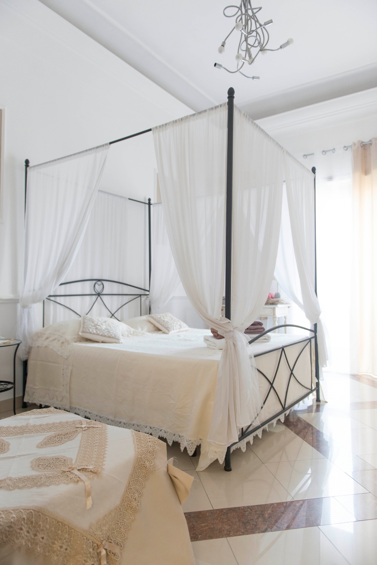 La camera si presenta in stile ottocentesco, imperiale, romantica e raffinata per un soggiorno esclusivo in un ambiente familiare.